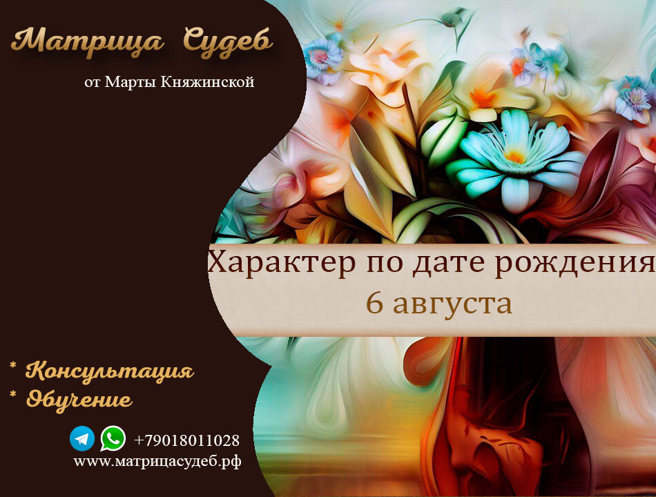 Что карты скажут о вашем характере? О тех, кто сегодня РОДИЛСЯ! 6 августа.. Ваша карта – 7 ♦ Заглянем в вашу программу рождения, через призму игральных карт. Что карты скажут о вашем характере? Описание характера человека (кратко), без учета года рождения. Упрям, изобретателен, добрый, отзывчивый, но ревнивый. Сильная воля и упрямство!. Не возможно сбить с намеченного пути. Внушает чувство безопасности и надежности. В любви движут высокие идеалы. . Беспокоен, будет часто менять место работы и жительства. В личных отношениях важна семья, любимые и близкие люди. Всегда будет разделять с ними все испытания. Ради семьи готов на любые жертвы. Если не научится предоставлять свободу близкому человеку, будут одни разочарования. С трудом принимает чужую точку зрения. Все делает сам и будет учиться только на своем опыте… Закрывается, если появляются проблемы. В отношениях много чувственной масти, зависимость от любви семьи, страх одиночества и жертвенность. В детстве опыт недолюбленности, не хв