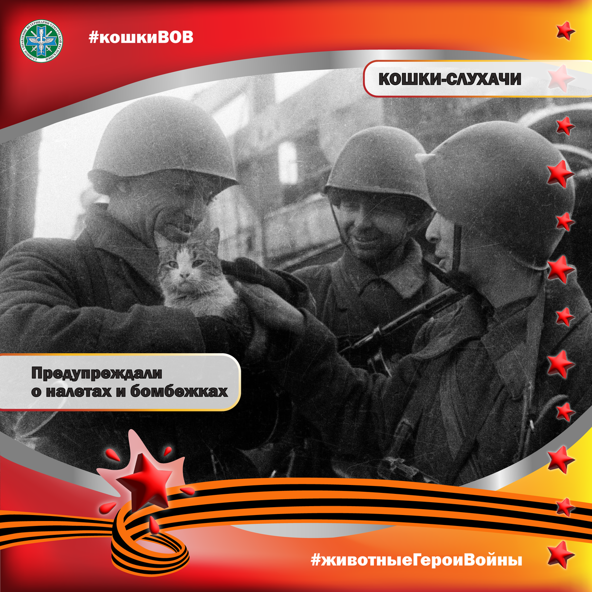 Многие слышали о героических подвигах собак во время Великой Отечественной войны 1941-1945 годов, но свою помощь и поддержку людям оказали и кошки. Они стали настоящей психологической опорой для человека – их мурчание умиротворяло и успокаивало, а также предупреждало об опасности. «Пушистая гвардия» заслужила свое уважение. Вспомним кошек и котов, которые внесли свой вклад в Победу. Кошки-слухачи. Кошки обладают тончайшим слухом. Они пугались звуков приближающихся самолетов задолго до их появления, тем самым предупреждали людей о налете. Поэтому котов часто заводили в тылу на складах, рядом с госпиталями, а также на зенитных батареях.