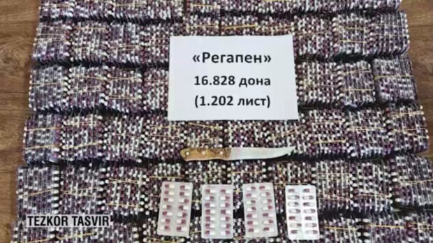 На основании обращения гражданина было принято решение провести специальное оперативное мероприятие. В ходе мероприятия, в Куштепинском районе, заявитель передал злоумышленнику 165 миллионов сум, взамен на 16 828 единиц психотропного препарата "Регапен". Злоумышленник, почувствовав подвох, попытался убить заявителя кухонным ножом.