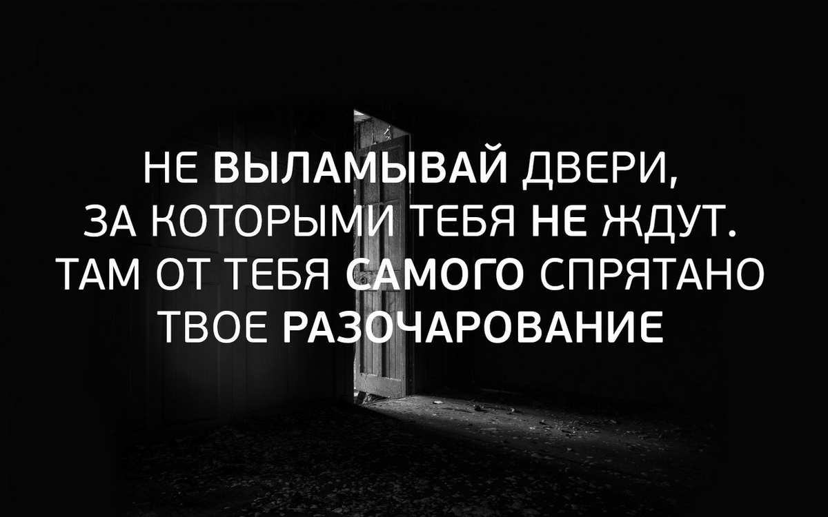 фото из инета Самого доброго Вам времени суток, дорогие мои читатели и подписчики! Друзья мои, представляю Вашему вниманию интересную статью, найденную на просторах Инета. Канал Мудрость жизни Почему не нужно навязываться людям, которых даже любишь? - О чем гласит восточная поговорка? Стучитесь ли вы в двери, которые перед вами не открывают? Многие люди до последнего вздоха готовы прорываться туда, где больше уже никогда их не примут. Почему так происходит, что мы активно не сдаемся и верим в лучшее, но нам не отвечают? Откуда столько самоуверенности в человеке, который на 150% знает (по крайней мере, ему так кажется), что ему везде ответят, его везде простят? Это ведь самое настоящее навязывание себя людям, которые не желают поддерживать с вами связь. Некоторые делают это только из-за чувства уважения и воспитания, но на самом деле им глубоко все равно на вас и на ваши просьбы. Так стоит ли все-таки стучаться в двери, которые ни в какую не будут открываться? Самый яркий пример, когда