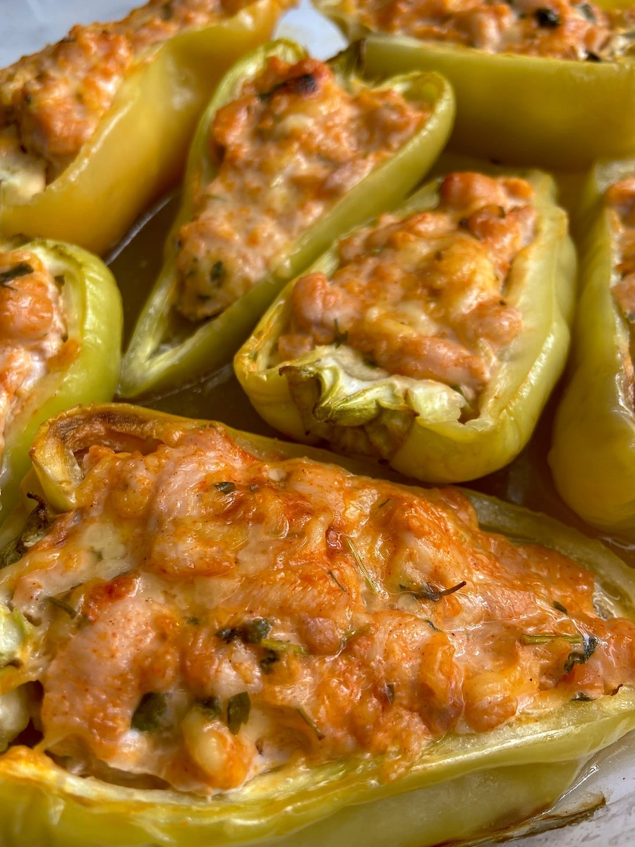 Рецепт как всегда очень простой в приготовлении @novgorodskaya Нам понадобится 🥄 Перцы разрезаем пополам, хвостик не удаляем. Убираем семена 🥄 Сыр натераем на мелкой терке. Филе мелко нарезаем 🥄 Филе смешываем с сыром, сметаной, зеленью и специями 🥄 Начиняем перец П.с.: Если начинка осталась, добавьте к ней яйцо и пожарьте куриные котлетки 🥄 Запекаем при 200* примерно 40мин Получаются очень сочные и ароматные перцы! Совсем не похожи на те, которые приготовленные по классическому рецепту. Обязательно попробуйте приготовить. А я вам пожелаю приятного аппетита 🤤🤗