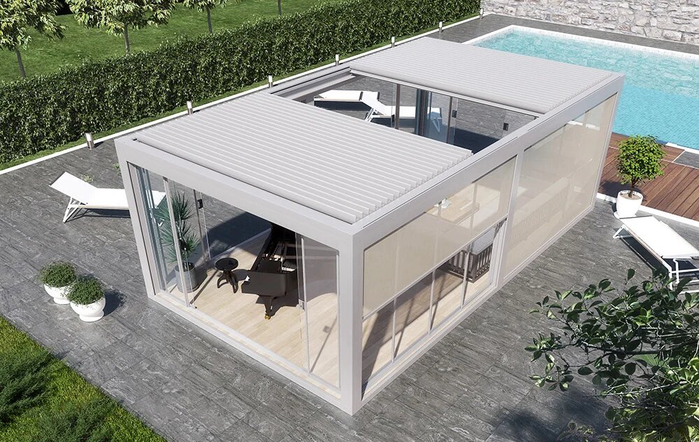 ДИЭЗИС - биоклиматическая пергола, которая обеспечивает естественную вентиляцию, защищает от прямого солнечного света, создавая комфортный микроклимат. Это новейшая разработка делает пространство более открытым и светлым. Раздельная система поворота и сбора ламелей в противоположные стороны друг от друга . Система перголы полностью защищает от дождя. Пергола отдельно стоящая и независимая.