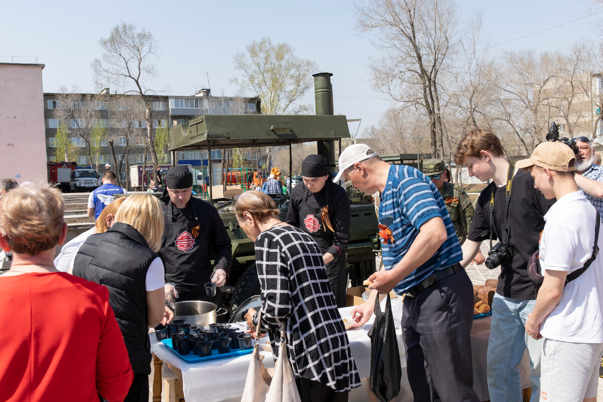 На площади возле ДК Визита работала полевая кухня, шел праздничный концерт. Цветы к памятнику воинам, павшим в годы Великой Отечественной войны коммунисты возложили цветы.