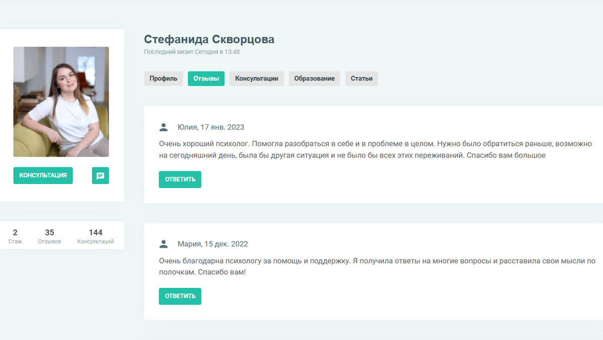 Решила разбавить записи по мотивации и планированию историей из жизни, Яндекс.Дзен прям-таки к этому располагает. Первое время после окончания магистратуры я консультировала на различных агрегаторах (параллельно проходя дополнительное обучение). Одним из них является PsySovet, по крайней мере там я могу показать свою анкету. Консультации онлайн, а тем более бесплатные, имеют свою специфику: Чаще всего клиенты негативно реагируют на рекомендацию обратиться в терапию к психологу на платной основе. Возможно, не видят разницы между консультацией и терапией. А разница огромна: Разовая консультация напоминает «оценочную сессию» - здесь психолог выясняет запрос, цель работы, собирает анамнез. Под конец может дать базовые рекомендации, выслать книги по теме запроса. Терапевтическая сессия – это совершенно другой уровень работы. Здесь клиент начинает совместно с психологом изучать себя – свои мысли, эмоции, реакции. Совместно с психологом ищет пути решения тех или иных проблем, проводит поведен