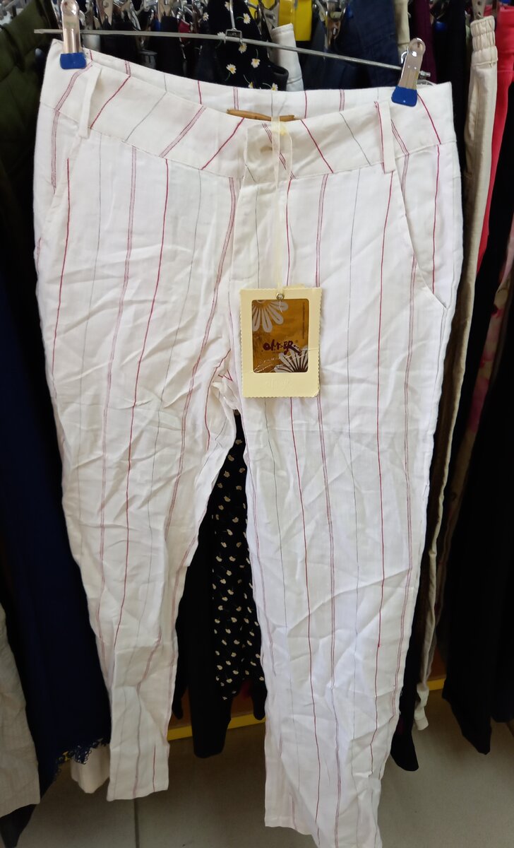 Здравствуйте всем читающим. Вроде и не собиралась вчера в секонд, устала после сельхозработ, да и на работу надо было собираться, но была рядом и не удержалась. Сама себе пообещала, что быстренько, одним глазиком, мерять и покупать ничего не буду. Угу, наивная. Меряла не меньше, просто смазанных фоток вышло больше. Одна приличная, если уж совсем точно. Так что заранее прошу прощения. Хлопковые брюки то ли китайского, то ли турецкого бренда omser 48 размера в хорошем состоянии. Джинсовый топ, абсолютно новый, тоже бренд непонятного происхождения. Но вещь сама по себе хорошенькая. Мужская хлопковая рубашка-поло от Томми Хильфигера, в хорошем состоянии. Понравился принт на футболке, но цена, даже с учетом скидки, показалась великовата. Даже 350 рублей, после того, как привыкла покупать их за 50/70 рублей. Полушерстяной кардиган от итальянской condola blui показался несколько маловат. Полиэстровые брюки с небольшим добавлением шерсти от российского дизайнера Татьяны Тягиной. 48 размер, в х