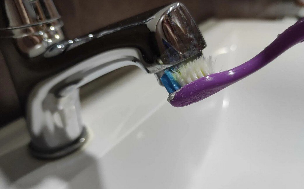 Одной из главных проблем в ванной комнате является известковый налёт, который возникает очень быстро по причине жёсткой воды и различных примесей, которые она очень часто содержит. Собирается известковый налёт не только на линиях затирки, но и на металлической поверхности. Жесткая вода содержит карбонаты магния и кальция. При очередном принятии тёплого душа, на металлических и других поверхностях оседает конденсат, который по мере накопления образует плотный налёт. И порой его не так просто очистить, особенно в запущенном состоянии. Я стараюсь как можно чаще чистить свои смесители, краны. Но иногда бывает, просто не хватает времени, смотришь, а кран уже в белых пятнах. Очищаю известковый налет простым способом, расскажу сейчас подробнее. Использую бумажные полотенца для удаления известкового налёта В таком состоянии кран у раковины был до того, как я его почистила. Работать нужно в перчатках, руки нужно беречь. Потребуется емкость, у меня это пластиковый контейнер. Также будет нужен