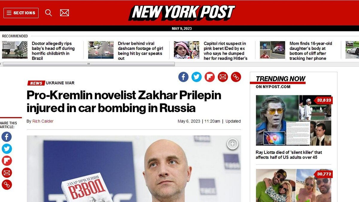 Произошедшее 6 мая покушение на Захара Прилепина, в результате которого писатель получил ранения, а его охранник Александр Шубин погиб, не осталось незамеченным западными СМИ, которые на все лады принялись обсуждать происшедшее.