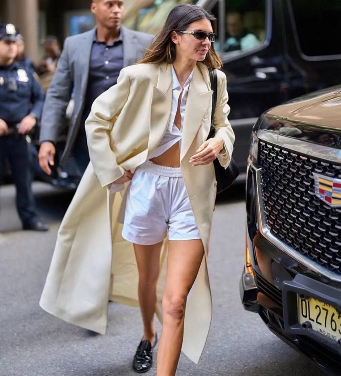 Трусы, рубашка и лоферы бойфренда+пальто: классный лук от Кендалл Дженнер