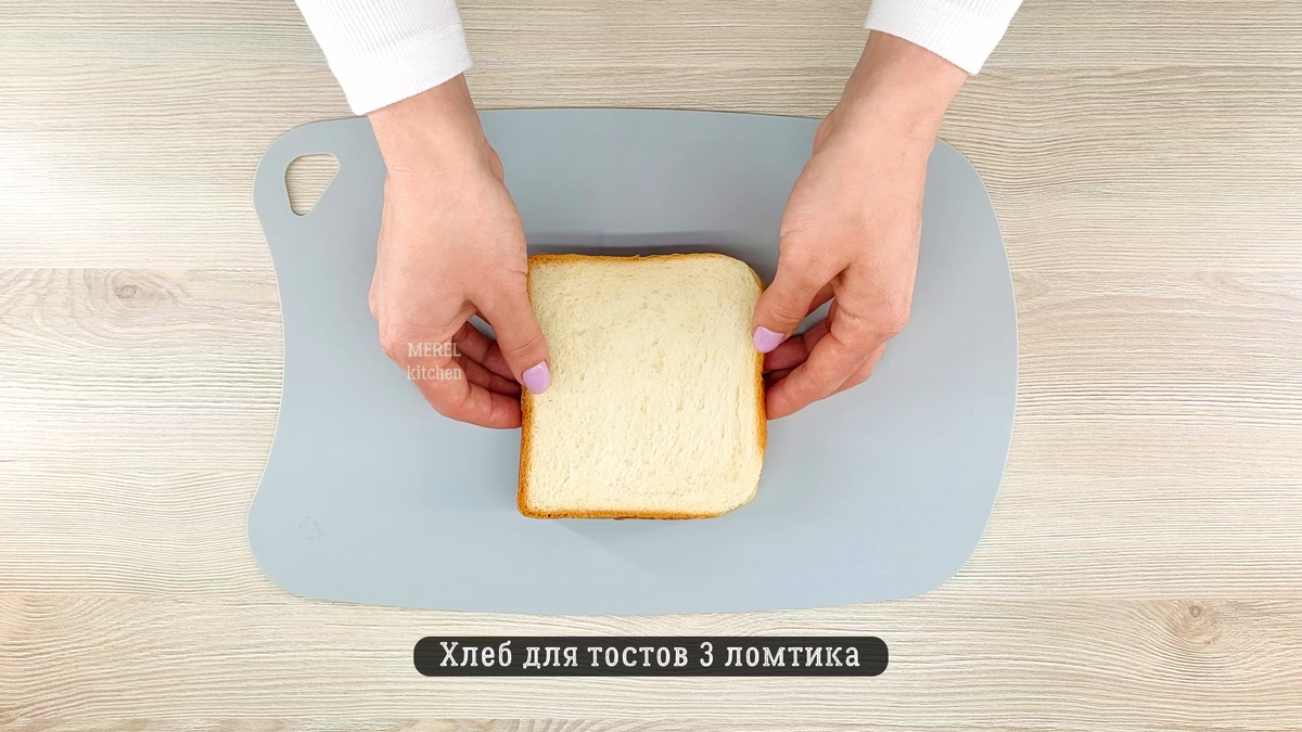 Для приготовления одной порции я беру тостовый хлеб 3 шт. Этот хлеб отлично подходит, он имеет приятный нежный вкус и хорошую консистенцию для приготовления.