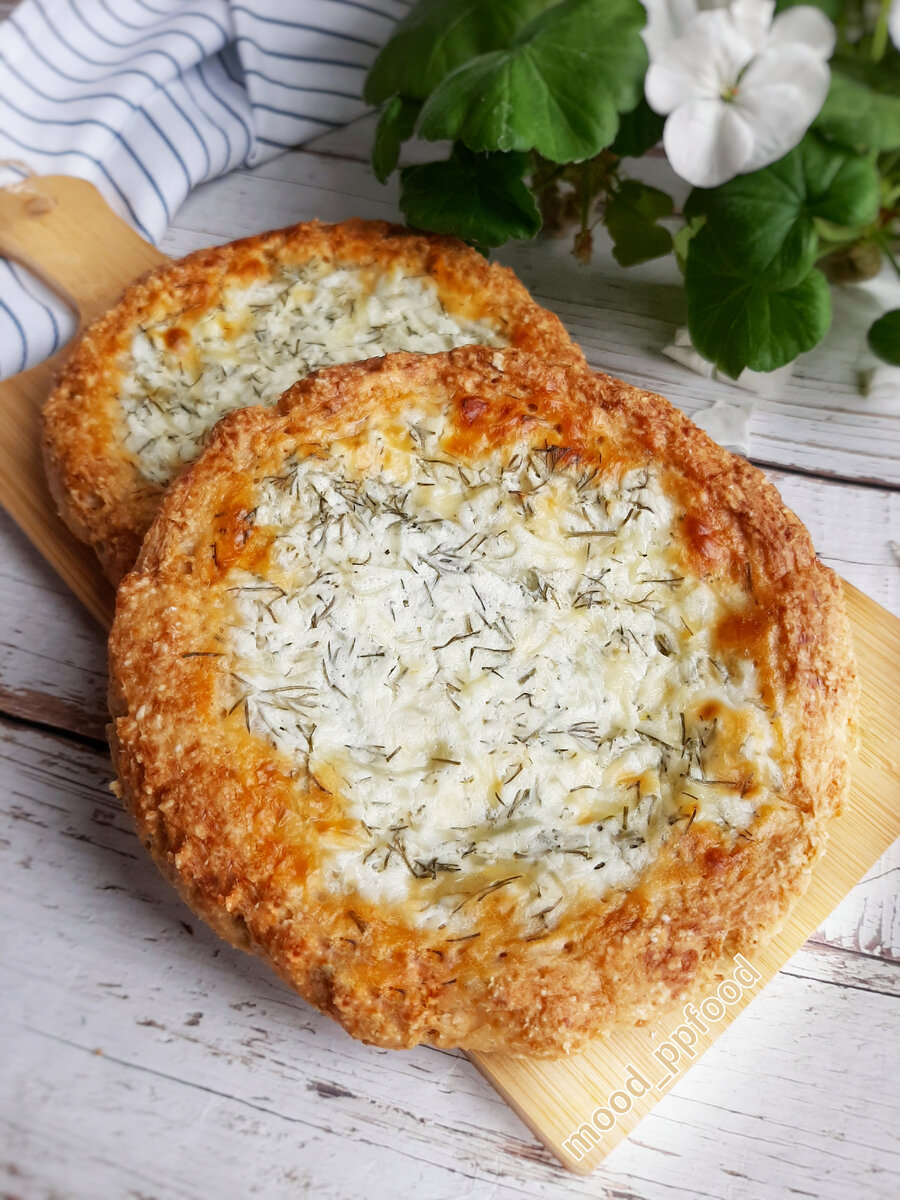 🍽КБЖУ на 100 г.: 211.6 ккал 17/8.3/16.6 Выход: 400 г. 🍽Ингредиенты: ▫️Для основы: Творог 5% - 180 г. Овсяные хлопья (15 мин.) - 90 г. Яйцо куриное - 1 шт. Разрыхлитель - 1 ч.л. Соль. ▫️Для начинки: Творог мягкий 5% - 120 г. Сыр лёгкий, у меня "Natura" - 40 г. Чеснок - 1 большой зубчик. Зелень свежая, у меня укроп. Соль по вкусу. 🍽Приготовление: 1️⃣ Овсяные хлопья измельчаем в кофемолке. 2️⃣ В миске перемешиваем 180 г. творога, одно яйцо, 90 г. измельчённых хлопьев, чайную ложку разрыхлителя и немного соли. 3️⃣ Полученное тесто делим на кусочки, из каждого кусочка катаем шарик, укладываем его на противень, немного прижимаем и формируем бортики. 4️⃣ Для начинки смешиваем: 120 г. мягкого творога, 40 г. тёртого сыра, немного измельченной зелени, выдавливаем зубчик чеснока и чуточку соли. 5️⃣ Выкладываем на тесто начинку и убираем в разогретую духовку на 180° и 25 минут. Приятного аппетита 😋
