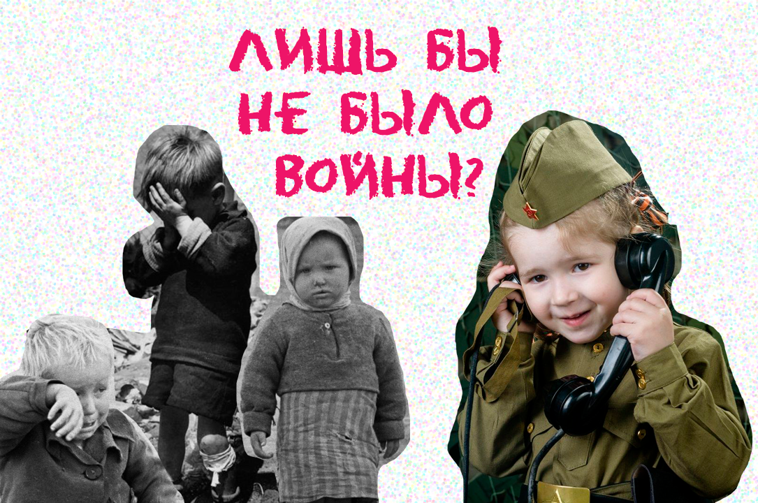 Тут же висит огромный лозунг "ЛИШЬ БЫ НЕ БЫЛО ВОЙНЫ". Я почувствовала дикое противоречие в смыслах праздника. С одной стороны мы встречаемся у мемориалов, чтобы почтить память героев, вспомнить как страшно было, что воевали даже дети и как радостно что все закончилось. А с другой стороны взрослые люди одевают детей в одежду, в которой были вынуждены все 4 года воевать, голодать, гибнуть и убивать люди, ради того чтобы никогда больше и никому не приходилось этого делать.