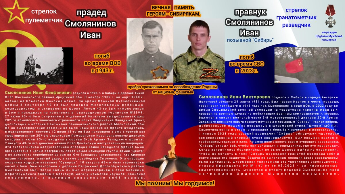 Прадед и правнук Смоляниновы Иваны-герои разных поколений в борьбе с фашизмом. Ко дню Победы 9 мая 2023 г.