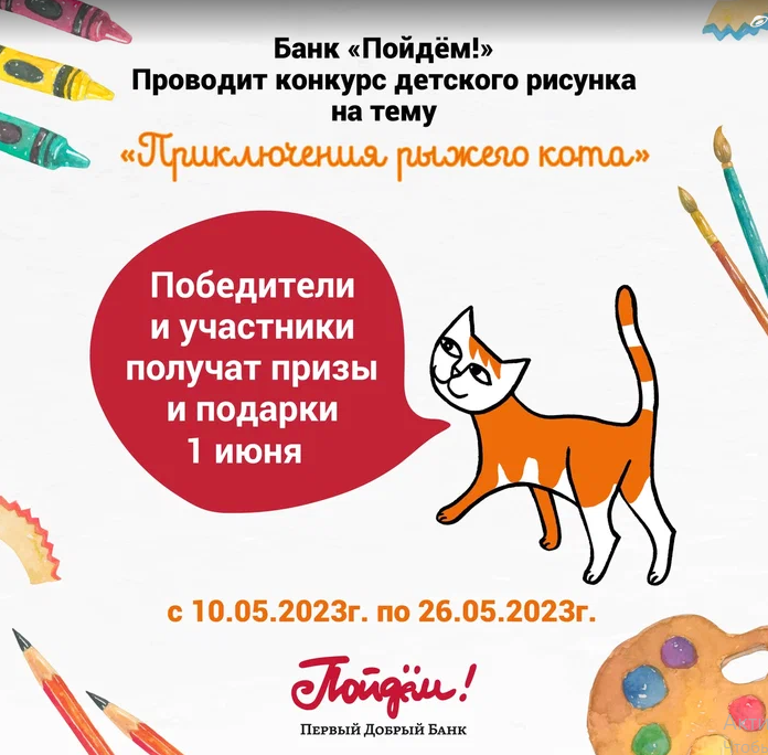 Банк «Пойдём!» проводит конкурс детского рисунка «Приключения рыжего кота»