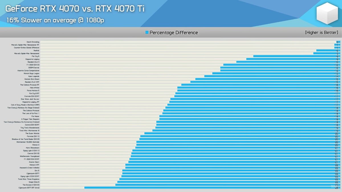 Ютубер сравнил GeForce RTX 4070 и RTX 4070 Ti в 40 играх и вынес вердикт