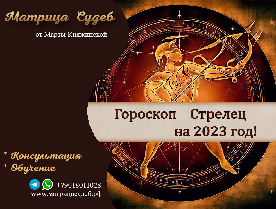 Вы смотрите на жизнь как на одно большое приключение, Стрелец, и ваш успех в 2023 году ограничен только вашими собственными колебаниями. Расширение кругозора занимает первое место в вашем списке в этом году, за которым следуют путешествия по миру. Когда у вас есть свободное время, вы преуспеваете в философствовании о своей жизни и о том, как ее улучшить. И у вас есть отличный шанс сделать это, когда ваша удивительная правящая планета Юпитер проводит вторую часть года в терпеливом земном знаке Тельца. Вы меньше спешите и больше стремитесь выяснить, в чем сейчас ваши сильные стороны, и ваша главная задача во время этого перехода — отгородиться от отвлекающих факторов на достаточно долгое время, чтобы прислушаться к своему внутреннему голосу. Ретроградный цикл Юпитера начинается в начале сентября и длится до конца декабря, предлагая вам переоценить то, что нужно для удовлетворения. Является ли счастье просто абстрактной концепцией, в которую вам нравится верить, или чем-то, чего вы действ