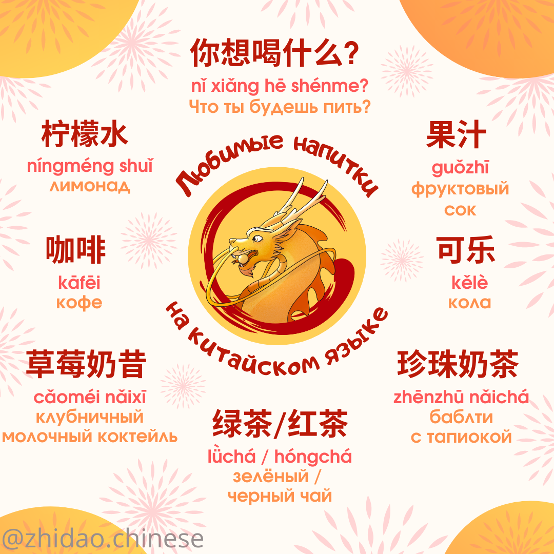 #zhidao_способы_сказать💭 Сегодня делимся с вами словами и фразами на тему "Любимые напитки на китайском языке"! 🍵 1️⃣ 你想喝什么? (nǐ xiǎng hē shénme?) Что ты будешь пить? 2️⃣ 果汁 (guǒzhī) фруктовый сок 3️⃣ 可乐 (kělè) кола 4️⃣ 珍珠奶茶 (zhēnzhū nǎichá) баблти с тапиокой 5️⃣ 绿茶 (lǜchá) зелёный чай 6️⃣ 红茶 (hóngchá) чёрный чай 7️⃣ 草莓奶昔 (cǎoméi nǎixī) клубничный молочный коктейль 8️⃣ 咖啡 (kāfēi) кофе 9️⃣ 柠檬水 (níngméng shuǐ) лимонад 📝 Ссылка на карточки Quizlet для изучения новых слов: https://quizlet.com/_d8xqvh?x=1jqt&i=2r5snr ❗В Quizlet вы можете послушать произношение всех фраз! Для этого нажмите на значок микрофона 🔊 📚 Хотите, чтобы Вы или Ваш ребенок заговорили на китайском? Напишите нам для записи на групповые / индивидуальные занятия! 🎓