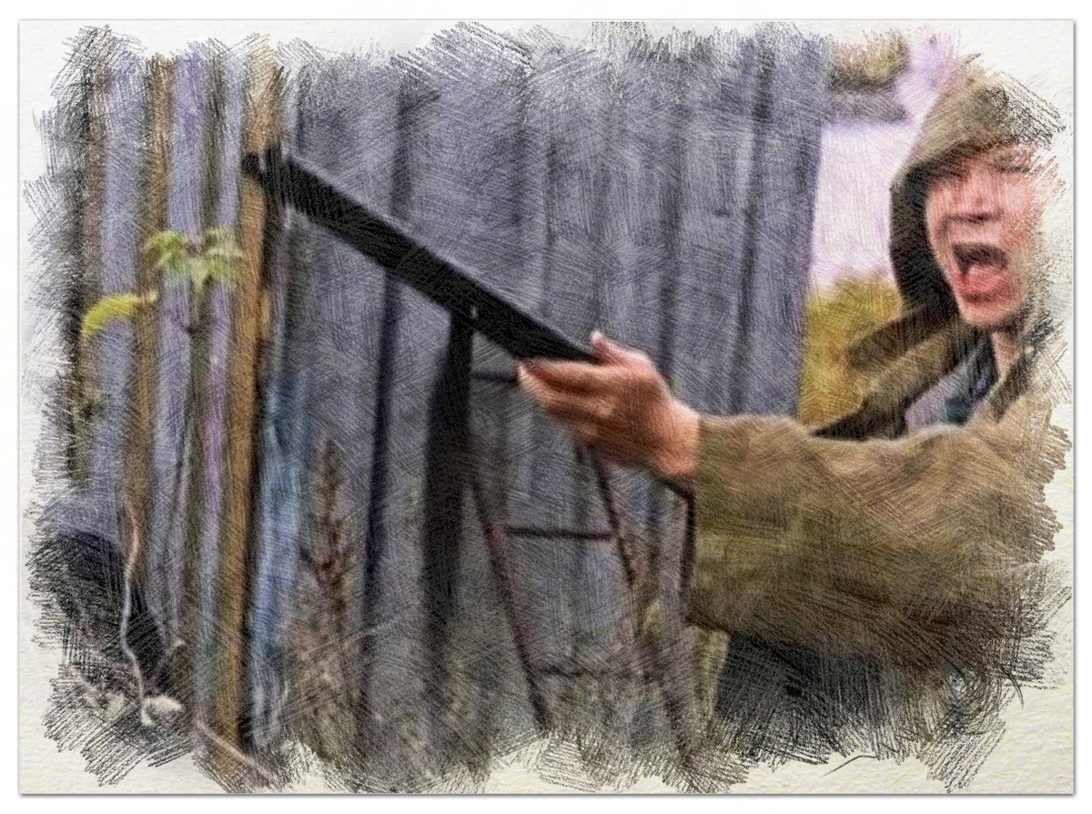 Алина решила отдохнуть от огородных работ. Она села у окна и взяла вязание в руки. Вдруг женщина заметила двух человек, крадущихся по огороду её подруги Лизы. Мало того, что они подозрительно озирались, так ещё Алина разглядела у одного из них ружьё. «Миша, подойди сюда», – позвала она мужа. «Что? Ты же знаешь, мне некогда. Пора кормить кроликов», – сказал Михаил. «Не бурчи. Погляди, по-моему, я таких не знаю. И к тому же у них ружьё», – проговорила жена. Миша повернулся к окну. Посмотрев в указанном направлении, он забыл про кроликов. «Слушай, мне кажется этих двоих показывали вчера по телевизору», – вспомнил Михаил. «Это те, что сбежали с зоны? Гляди, они вошли в дом. Я всегда говорила Лизе закрывать дверь. Но разве она послушает», – возмутилась Алина. Лиза услышала шаги позади себя. Повернувшись, она столкнулась лицом к лицу с незнакомцем. В руках он держал ружьё. С правой стороны от него находился ещё один мужчина. Их лица говорили сами за себя. Лизе стало по-настоящему страшно. «С
