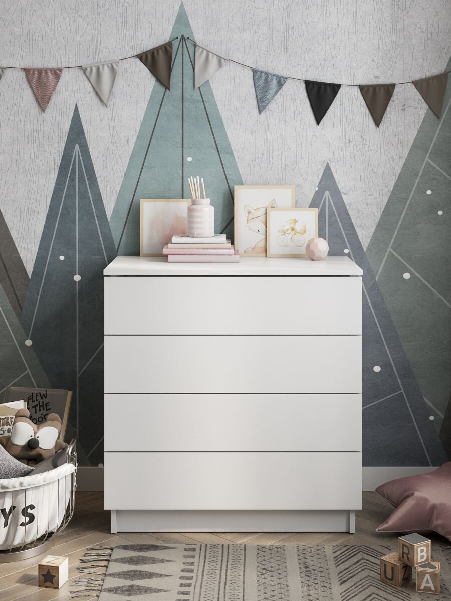 В детской комнате всегда нужно место для хранения игрушек или вещей. Отличным вариантом для такого хранения станет комод. Можно с детства приучать ребенка складывать за собой вещи или игрушки. Но какой комод выбрать? Чтобы комод отлично подошёл к общему стилю оформления детской, то самый подходящий под любой стиль цвет - белый. Так же комод можно дополнительно украсить. На столешнице интересно будут смотреться изделия разной фактуры и формы, можно поставить небольшие шкатулки или коробки, фоторамки или поделки детей, искусственные или натуральные цветы. Такой комод можно заказать по ссылке https://ozon.ru/t/NNZZwV8