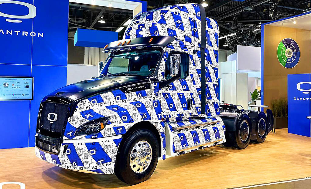 Недавно немецкий стартап QUANTRON принял участие в выставке Advanced Clean Transportation Expo-2023 (США), и показал там капотный седельный тягач (FCEV), работающий на водородных топливных элементах. Бизнес-модель этих хитрых немцев довольно проста: брать готовое транспортное средство, удалять из него ДВС и все агрегаты, работающие вместе с ним, а на освободившееся место инсталлировать электрическую трансмиссию. По этой причине людей там работает мало, а производственные площадки, видимо, где-то «в гаражах» на аутсорсинге. Да, западный автопром сейчас погружается в эру углеродной нейтральности, благодаря агрессивной пропаганде и государственным дотациям. Сложностей в этом деле тьма, но крупные игроки все же движутся в этом направлении. Правда, двигаются они очень маленькими шагами. По этой причине, таким вот непонятным карликам, как QUANTRON, остается поле для деятельности и пиара. Существуют несколько европейских и китайских компаний, которые уже создали свои прототипы водородно-элект