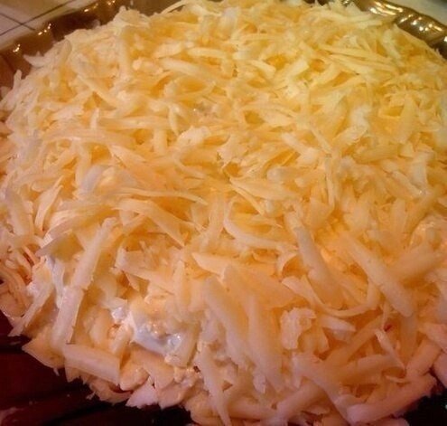 Ингредиенты: 🥗Филе куриное(вареное)—300 грамм 🥗Грибы(шампиньоны, обжарить с луком)—300 грамм 🥗Морковь(корейская)—150 грамм 🥗Яйцо куриное(вареное)—3 шт. 🥗Сыр твердый—150 грамм 🥗Лук репчатый(средний)—1 шт. 🥗Майонез Приготовление: 1.Заранее подготавливаем ингредиенты. Вареное филе курицы (порвать на волокна), грибы шампиньоны обжаренные с репчатым луком, корейская морковь, яйца (порезать крупно), сыр (натереть на крупной терке), и майонез. 2.Далее берем большое глубокое блюдо и выкладываем салат слоями. Каждый слой, смазывая майонезом. Сначала выкладываем вареное филе. Майонез. 3.Далее обжаренные грибы с луком. Майонез. 4.Корейская морковь. Майонез. 5.Яйца. Майонез. 6.И сверху тёртый сыр. Приятного аппетита💟