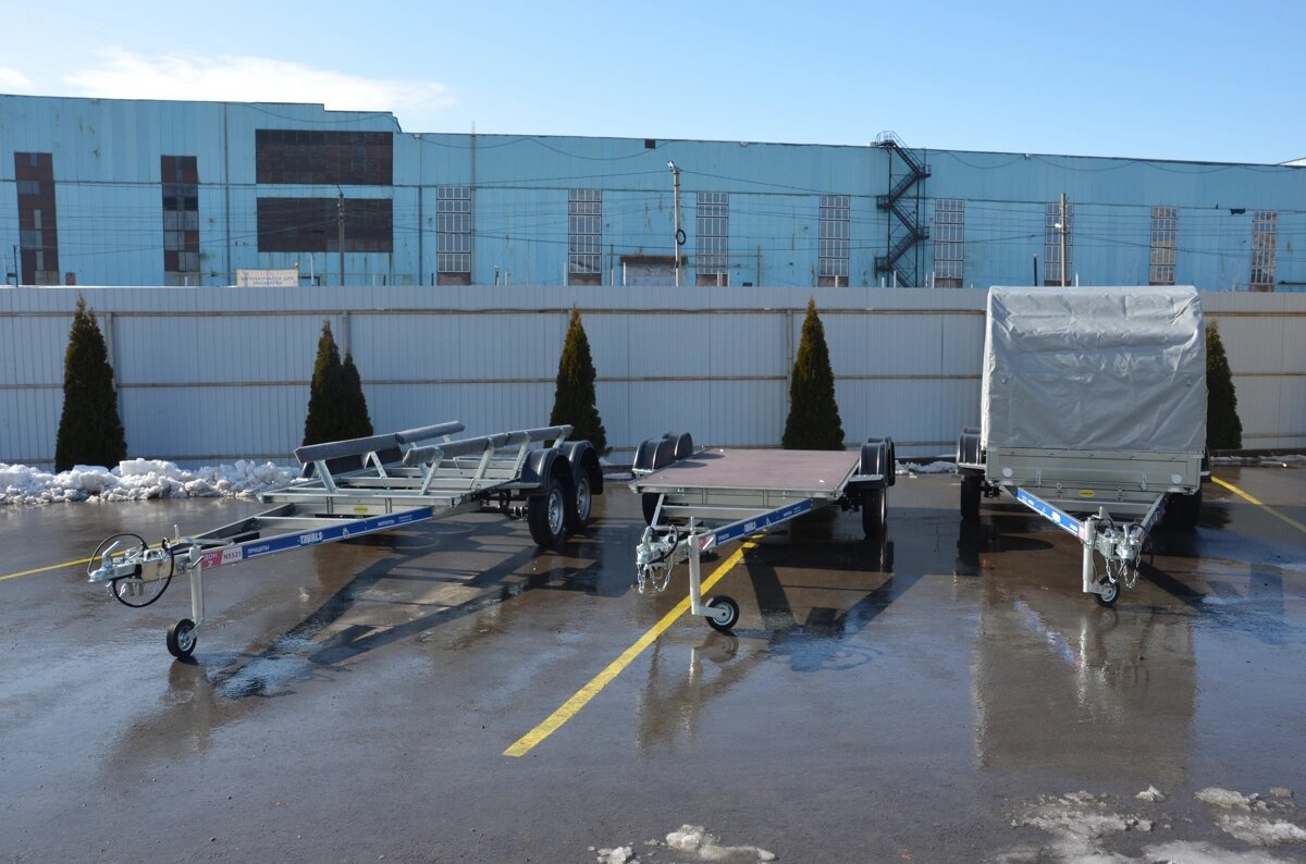 Одна из модификаций прицепа-трансформера «Тавиалс» 3 в 1» представляет собой лафет для перевозки водного транспорта (лодок):