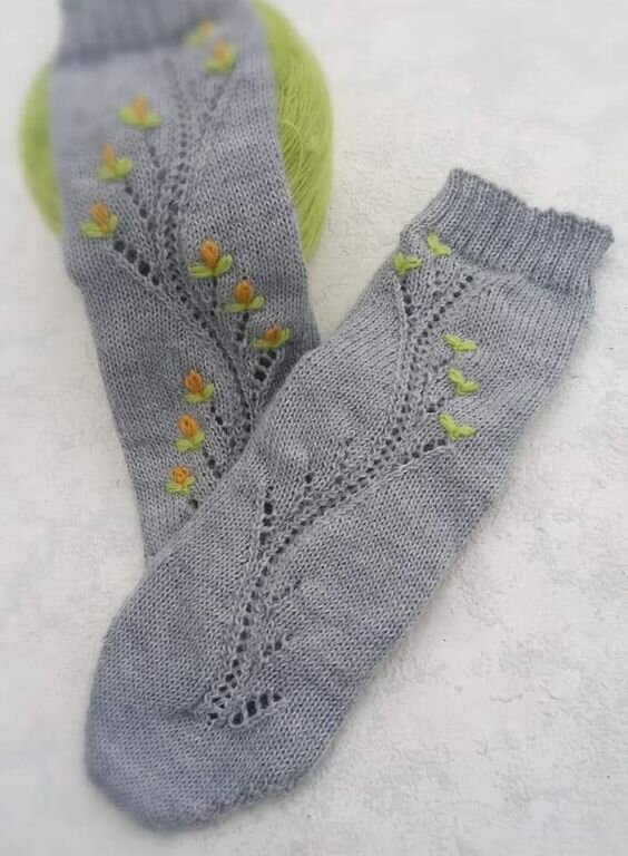 Эти носочки покорили меня,тем более вариантов тут бесконечное множество: с разной вышивкой носочки будут смотреться совсем по разному Эти солнечные носочки покоряют своим цветом,но если связать их, к примеру в сиреневом цвете,то узор будет напоминать цветочки сирени, в общем, фантазировать можно бесконечно)): Эти носочки мне очень нравятся своей фактурностью!: Эти носочки для меня новогодние елочки: А эти носочки напоминают отпуск: море и песок))) и узор похож на песочек,переносимый летним ветерком и образующий замысловатые узоры: Тут мне понравился простой,но интересный узор: А эти носочки это просто лето, в ожидании которого и в предвкушении мы все сейчас находимся)): Спасибо Вам за лайки и комментарии!