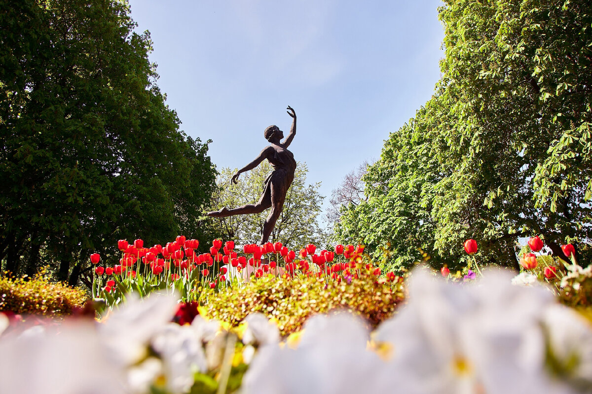 На территории Парка Горького можно встретить множество скульптур под открытым небом, и у каждой есть своя история. В 1930-е годы Елена Янсон-Манизер создала «Балерину», моделью для которой была знаменитая балерина, солистка Большого театра Галина Уланова. Если быстро обходить скульптуру, возникает ощущение, что балерина танцует. Находится она неподалеку от здания дирекции парка. А в мае 2016 года на Пушкинской набережной появился первый в Москве памятник водолазам авторства Леонида Тишкова. Скульптура «Водолаз-маяк» — необычный проект, задуманный скульптором Верой Мухиной еще в 1937 году. Он выполнен в масштабе около трех метров и обладает атрибутами действующего маяка: в шлеме находится ритмично мигающая лампа, загорающаяся вместе с городским освещением.