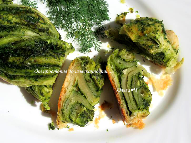 Для начинки поместите зелень, чеснок, растительное масло и соль в чашу блендера. Измельчите. Слоеное тесто разделите на 2-4 части (по количеству булочек), раскатайте и смажьте начинкой. Сверните рулетом и разрежьте вдоль на 2 половинки не доходя до края. Затем переплетите половинки между собой и выложите на противень для выпечки. Выпекайте при 220*С 20-25 минут. Приятного аппетита! Вам также могут понравиться: