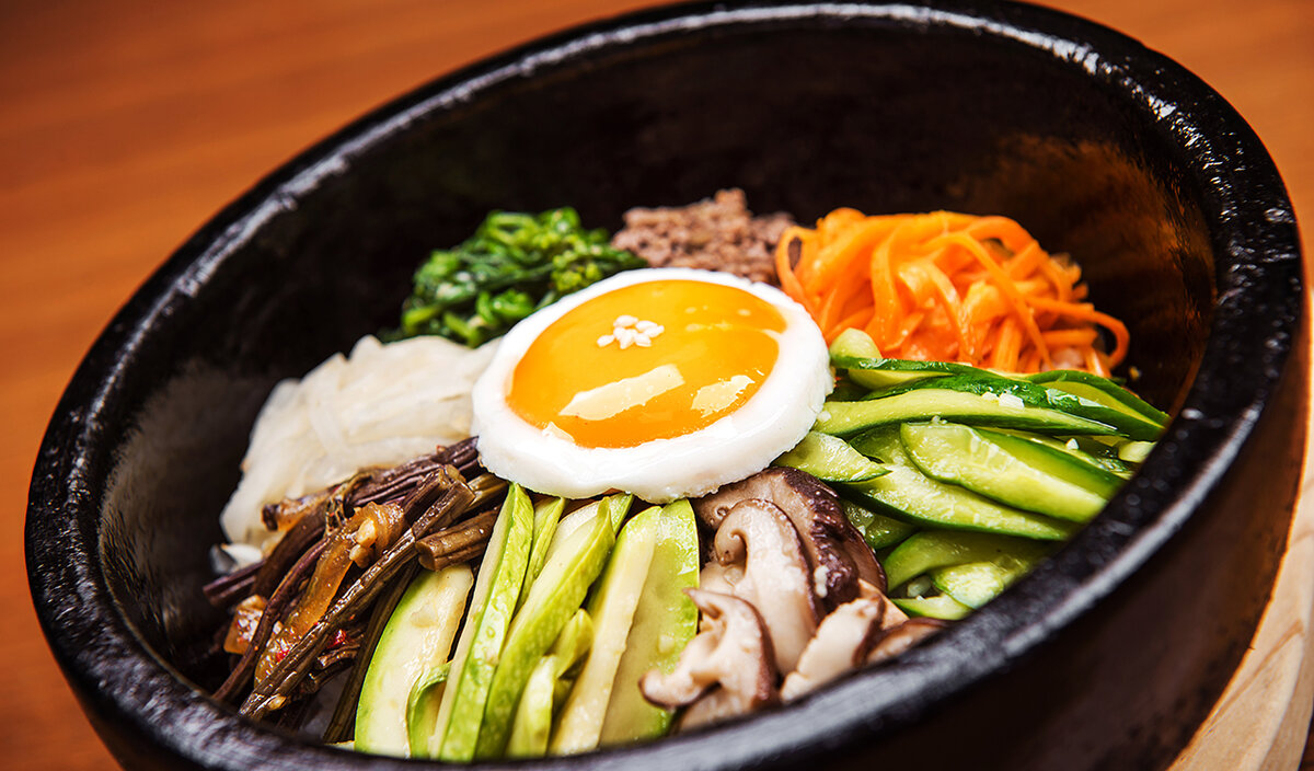 Название бибимбап происходит от корейских слов "бибим" и "бап", которые означают "смешанный" и "рис" соответственно. Это блюдо традиционно готовится путем смешивания в миске риса, овощей, мяса и соуса. Ингредиенты располагаются по кругу, причем каждый ингредиент представляет собой отдельный вкус и текстуру.