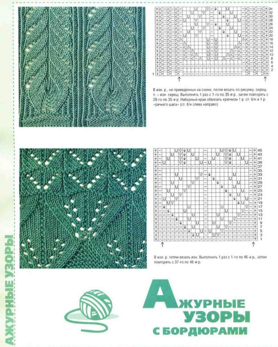 Ажурные узоры спицами с бордюрами ( фото+схемы)
