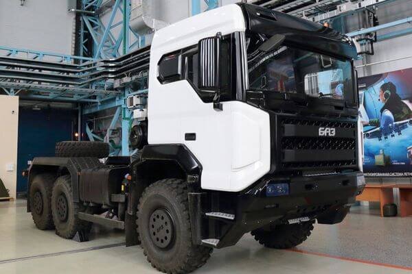 В этот раз речь не о грузовиках «УРАЛ», а о детище Брянского автомобильного завода, которое получило наименование БАЗ-S36A11 и было официально представлено весной 2023 года. Предприятие, входящее в концерн воздушно-космической обороны «Алмаз — Антей», пока что показало предсерийный образец грузового гражданского автомобиля. «Трехосник» с распределением момента 6х6 имеет полную массу чуть менее 36 тонн и грузоподъемность более 22 тонн. «Сердце» этого внушительного богатыря схоже с теми, что устанавливают на ГАЗоны или УРАЛы – это дизель 6531 мощностью 422 лошадиные силы от Ярославского моторного завода, соответствующий экологическим нормам Euro 5. Это же предприятие поставит и трансмиссию – 9‑ступенчатую механическую КПП с демультипликатором (раздаткой). Каждая ось оснащается независимой подвеской и обладает грузоподъемностью 12 тонн. Инженеры, создавшие тягач, говорят, что отечественных аналогов таких ведущих габаритных мостов в России нет. Обращают на себя внимание еще две вещи. Во-пе