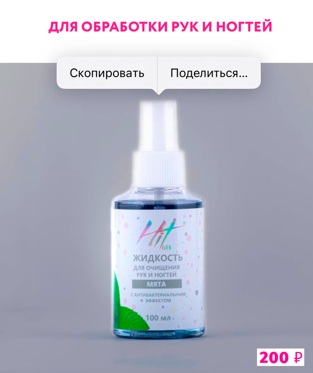 1. Антибактериальное средство для обработки рук и ногтей "HIT gel " с ароматом мяты, 100 мл - любой маникюр начинается с обработки рук мастера и клиента антисептиком (есть с разными ароматами) 2. Мультидез Тефлекс для дезинфекции и мытья поверхностей (триггер), 500 мл - после приема клиента нужно обязательно протирать рабочуюю поверхность 3. Мультидез Тефлекс универсальный (концентрат), 1 л - также подойдет для мытья поверхностей + дезинфекции инструментов. Уничтожает грибок, плесень, а также их споры. 4. Мультидез Тефлекс концентрат, 500 мл - для ПСО, дезинфекции и стерилизации инструмента. 5. Мультидез Тефлекс для дезинфекции воздуха БАБЛ ГАМ (триггер), 500 мл - уничтожает инфекции, передающиеся по воздуху (ОРВи, грипп, туберкулёз и пр.). 6. РЕНОВАТОР ИНСТРУМ Гигиена Мед, 500 мл - 15 минут и Ваши инструменты блестят, как новые! Средство удаляет налет и ржавчину с инструмента 7. Пластиковый стерилизатор для дезинфекции маникюрного и педикюрного инструмента с применением химических