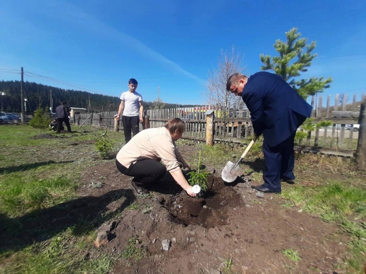 В Еткульском районе партийцы вместе с жителями села Каратабан заложили аллею хвойных деревьев.
