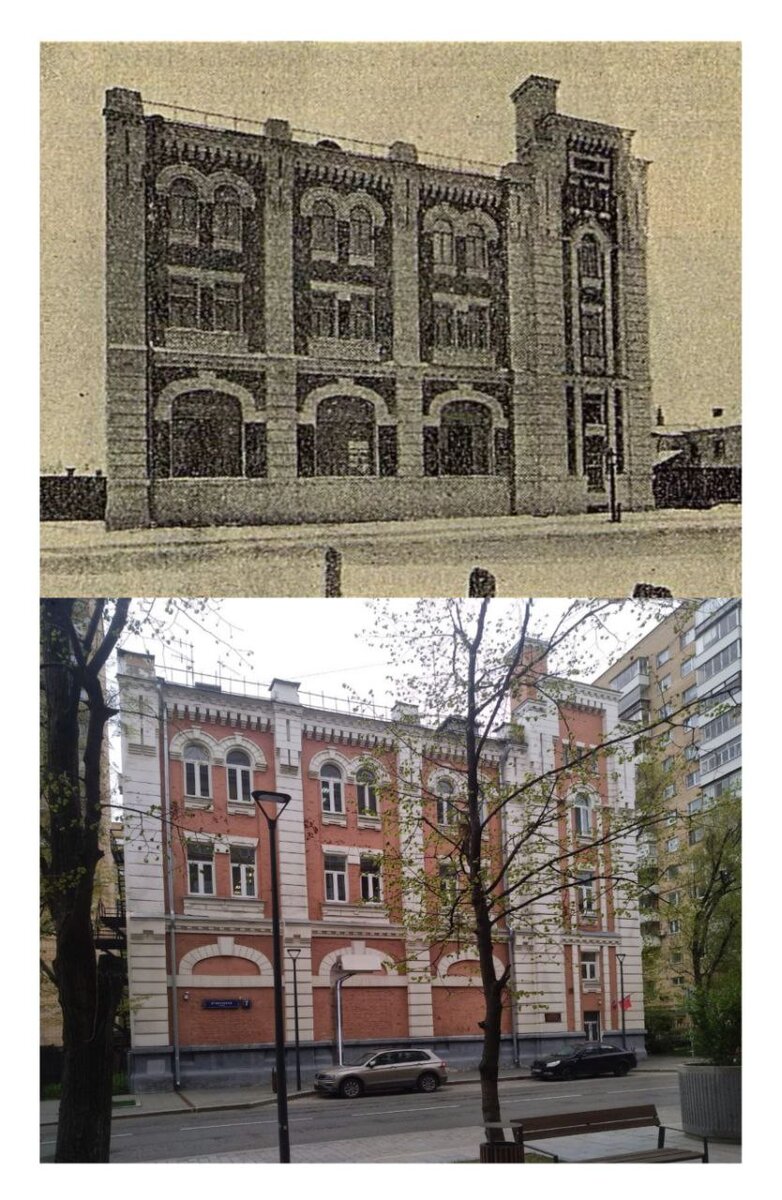 2-й Миусская улица. Трамвайная подстанция. Чёрно-белая фотография сделана в 1904-м. Нижний снимок — 118 лет спустя. Подстанция была заложена в августе 1903 года (скоро юбилей, 120 лет). Тогда же московские власти приступили к укладке первой очереди электрического трамвая. Запущена подстанция летом 1904 года, сразу после Краснопрудной подстанции. В «Справочной книжке городских железных дорог» указано: на Миусской подстанции «двѣ машины по 400 килоуаттъ» (так писали на первых порах ныне привычное нам слово «киловатт». Вскоре подстанция была расширена до четырёх машин по 400 килоуатт. С 1907 года трамвайное движение в Москве питалось от Центральной электростанции, что на Болотной набережной. Энергия поступала в контактную сеть через девять тяговых подстанций. Семь из них располагались в отдельных зданиях. Одна была совмещена непосредственно с Центральной электростанцией, ещё одна — в Миусском депо. Миусская подстанция обслуживала Марьинскую линию (она тянулась от Малой Сухаревской площа