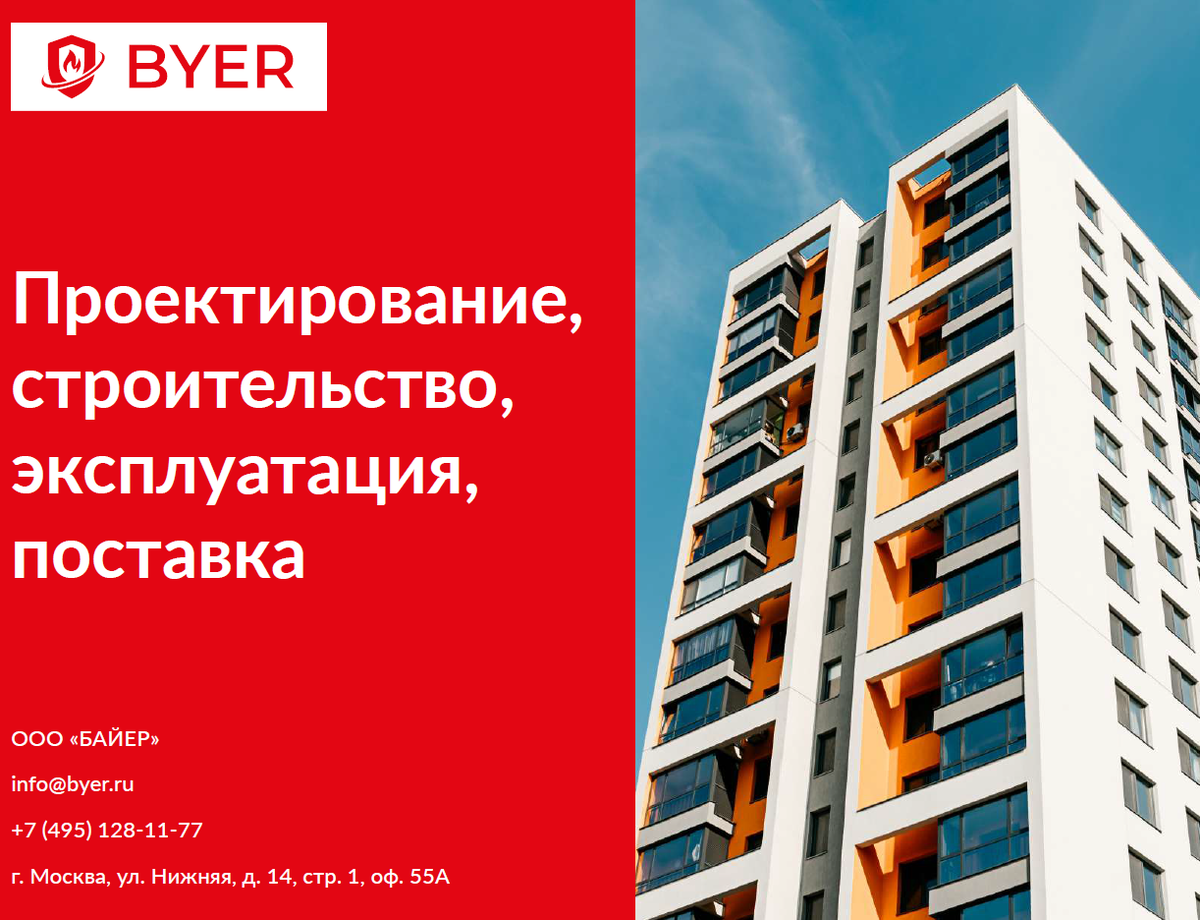 Компания BYER. Не просто компания — огромная команда профессионалов своего дела. Проектирование, огнезащита, ландшафтный дизайн, строительство жилых и нежилых зданий, дизайн интерьеров, разработка и монтаж систем водоснабжения — сферы деятельности можно перечислять бесконечно. И мы гордимся тем, что можем выполнить любую задачу. Но начнем с истории компании. Наша история В 2009 году была основана наша компания. В то время ее основным видом деятельности был монтаж и техобслуживание противопожарных систем. В 2011 году вместе с европейскими партнерами мы запустили производство специальных огнезащитных составов, а также противопожарных окон и дверей. В 2013 году мы создали собственный проектный институт, задачей которого стала разработка специальных техусловий и разделов в проектных документах. В 2015 году мы существенно расширили список услуг по проектированию, а также наладили партнерские связи с крупнейшими производителями оборудования для обеспечения пожаробезопасности. В 2017 году ком