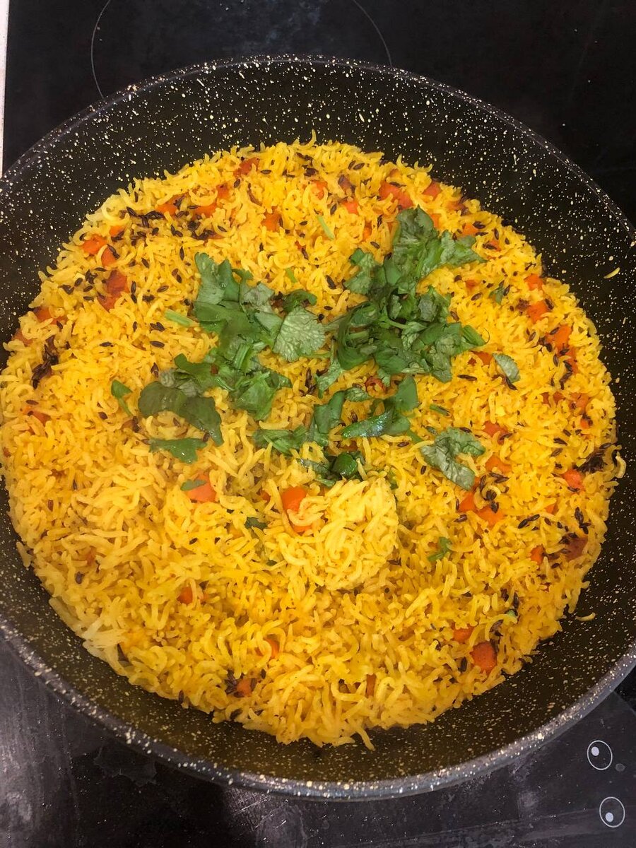 Плов без мяса за 25 минут 💛 Он у меня тут с тофу, его почти не видно, так как стал желтеньким. Можно делать ещё с паниром (адыгейским сыром), соевое мясо (его предварительно замочить в кипятке на 5 минут, отжать и пожарить) - залить масло и на нем поджарить 30 секунд специи у меня зира, перец, асафетида, куркума. - потом добавить порезанную морковку и тофу/панир/соевое мясо - обжать минут 5, и промытый рис басмати (я его обожаю 😻) закинуть тоже для жарки на пару минут - после залить водой 1/2 и убавить на самый минимум и через 16 минут все готово ✅ (Да именно 16 минут 😁 такая магия 🪄) Сверху я посыпала зеленью - кинзой. Ещё очень люблю добавлять туда барбарис, но муж не любит 😒 И ещё не забудьте посолить, приятного аппетита 😋