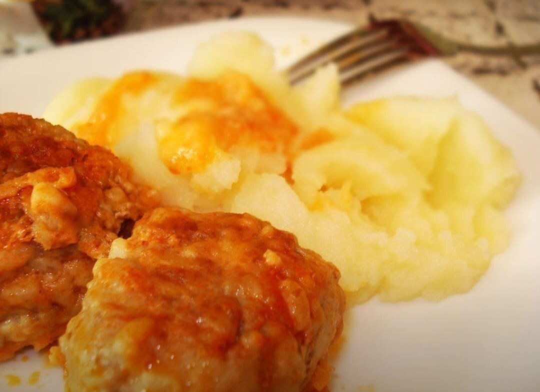 Ингредиенты: - Мясной фарш(свинина + говядина)-400г - Рис - 1/2 стакана кругло зернового. - Лук -1 средняя луковица - Яйцо- 1шт - Мука для панировки. - Соль по вкусу - Растительное масло ( для жарки) Для соуса: - Томатная паста - 1 чайная ложка - Мука - 1 столовая ложка - Сливки(сметана)- 1 столовая ложка - Вода - 1,5 стакана воды. Приготовление: 1. Мясо прокрутить через мясорубку или купить готовый фарш. 2. Лук мелко измельчить блендером или пропустить через мясорубку. 3. Рис отварить до полуготовности. Дать остыть. 4. Смешать все ингредиенты фарш, яйцо, лук, рис, соль. Все хорошо перемешать. 5. Сформировать тефтели шариками 5 см. Обвалять в муке. Выложить в разогретую сковородку с растительным маслом. Обжарить со всех сторон примерно по 5 минут. Далее добавить воды на 0,5 уровня тефтелей и тушить 15 минут. 6. В стакан налить половину воды и добавить муку и сливки/сметану, все перемешать до однородной консистенции. Тушить еще 15 минут. После готовности тефтели можно подавать с люб