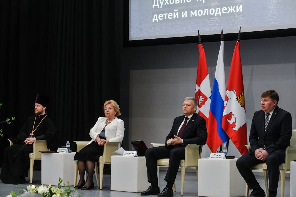 Глава Перми Алексей Дёмкин встретился с директорами школ, представителями Русской православной церкви (РПЦ) и некоммерческих организаций. Они обсудили духовно-нравственное и военно-патриотическое воспитание подрастающего поколения и поддержку молодежных инициатив. В Параде Победы в Перми приняли участие более трех тысяч человек По информации департамента образования Перми, в школах реализуются программы духовно-нравственного воспитания и федеральный проект «Разговоры о важном», работают советники по воспитательной работе. В 70 % школ Перми открыты первичные отделения «Движения первых». С нового учебного года в школах города каждую неделю проводят церемонию поднятия флага Российского Федерации. Протоиерей Александр Толокнов сообщил, что в пермских школах регулярно проводятся встречи с представителями РПЦ, а также реализуется программа «Основы православной культуры». Протоиерей подчеркнул, что школы и церковь стали партнерами в духовно-нравственном воспитании детей. Директор школы № 13
