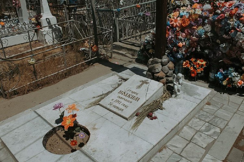 И стоит на этом кладбище могила, которую многие считают чудотворной. Это могила старца Иоакима, находящаяся к западу от церкви, по левую сторону от центральной дорожки. Туда приходят не только местные жители, но паломники из других городов, потому как это место является священным для верующих и слава о нем выходит далеко за пределы нашего региона.