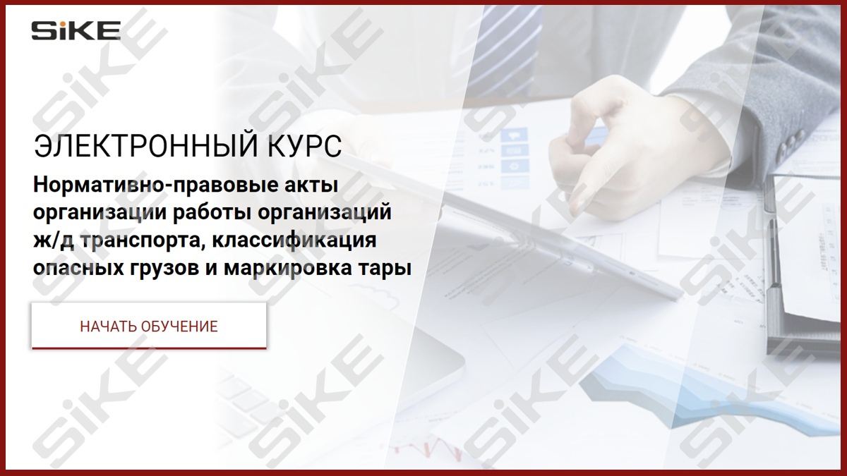 Новый электронный курс SIKE для ознакомления с современной нормативно-правовой базой при организации работ железнодорожного транспорта, а также с классификацией опасных грузов и правилами маркировки тары.