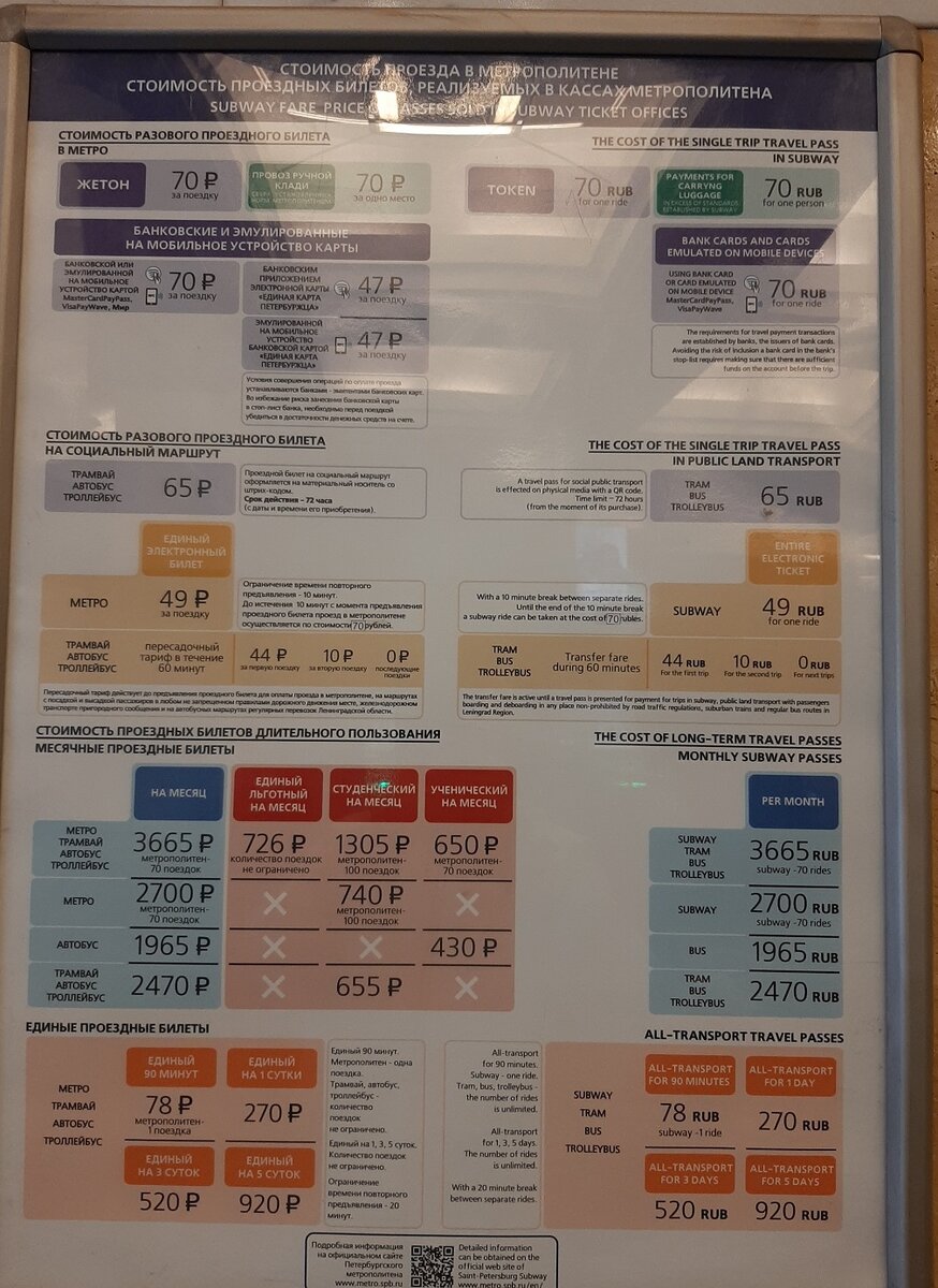 Еще в прошлую поездку обещала поделиться, вот модно сейчас говорить лайфхаком, как можно сэкономить на проезде в общественном транспорте Санкт Петербурга понаехавшим. Вот сейчас это и делаю.Данные на 2023 год. Лайфха́к (англ. life hack) — хитрость или полезный совет, помогающий эффективно решить ту или иную проблему. Итак: проезд 1 раз в метро по жетону или оплата картой «МИР», но не питерского банка, обойдется в 70 руб. На автобусе или трамвае 65 руб. Как говорил Киса Воробьянинов: ОДНАКО. На семью так и разорится можно. Тем более что найдется еще много мест, где оставить денег надо. Поэтому во первых, если приехали организованно, спрашиваем гида, подскажут. И во всех остальных случаях просто подойти в кассу метро, найти менее замороченную даму в кассе и уточнить все интересующие моменты. А я делюсь своим опытом с Вами: 1. Карта «МИР», как выяснили, работает только карта выданная Питерским банком. Все остальные регионы 70 р метро и 65 р наземный транспорт. 2. Вот это был выход и реком