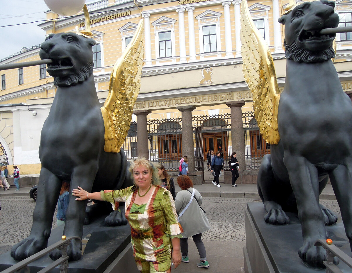 Пару лет назад крылатые персоны были отреставрированы, поэтому, сейчас выглядят просто потрясающе. Особую славу принесли грифонам позолоченные крылья. Говорят, в белые ночи эти особи летают над городом))