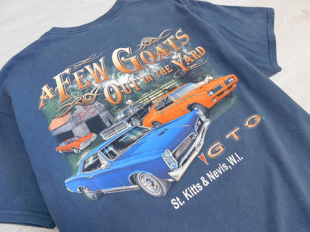 Всем привет, с вами Секонд Бренд! Сегодня я поделюсь с вами отличной вещью из моего маленького магазинчика- секонд хенд. На спине футболки яркое, большое ретро изображение тех самых авто - Pontiac GTO. Pontiac GTO — автомобиль, выпускавшийся компанией Pontiac занимающимся выпуском спортивных автомобилей с 1964 по 1974 год. Спереди тоже есть изображение этой машины. Идеально подойдет для любого поклонника авто Pontiac. Над ними фирменная надпись "Несколько коз во дворе" Если присмотреться к рисунку на спине, то можно найти коз )) Футболка унисекс с короткими рукавами и круглым вырезом подойдет как женщинам, так и мужчинам. Цвет футболки с эффектом потертости и выцветания. Изготовлена из прочного 100% хлопка, который прослужит долгие годы. Ну и само лого футболки - Gildan. Размер футболки L ниже есть фото замеров, то бы не прогадать с размером. Отличная идея для подарка, любителю ретро автомобилей или конечно же для себя) ----------------- Все вещи после Секонд хенда проходят обрабо