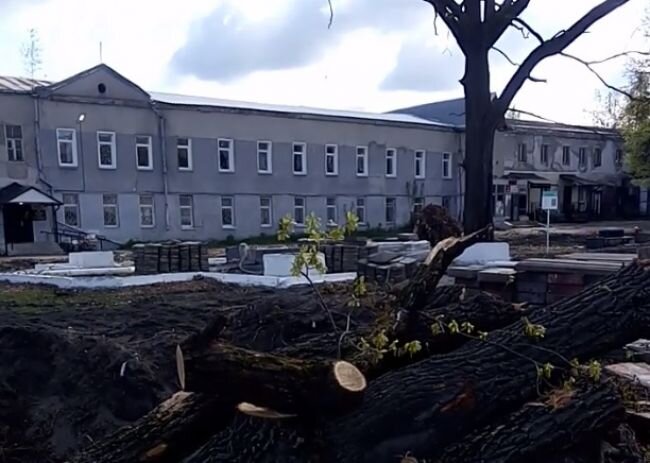 Жители города Гусь-Хрустальный жалуются на вырубку деревьев в центре города. Пост об этом появился в паблике "Подслушано в Гусе".