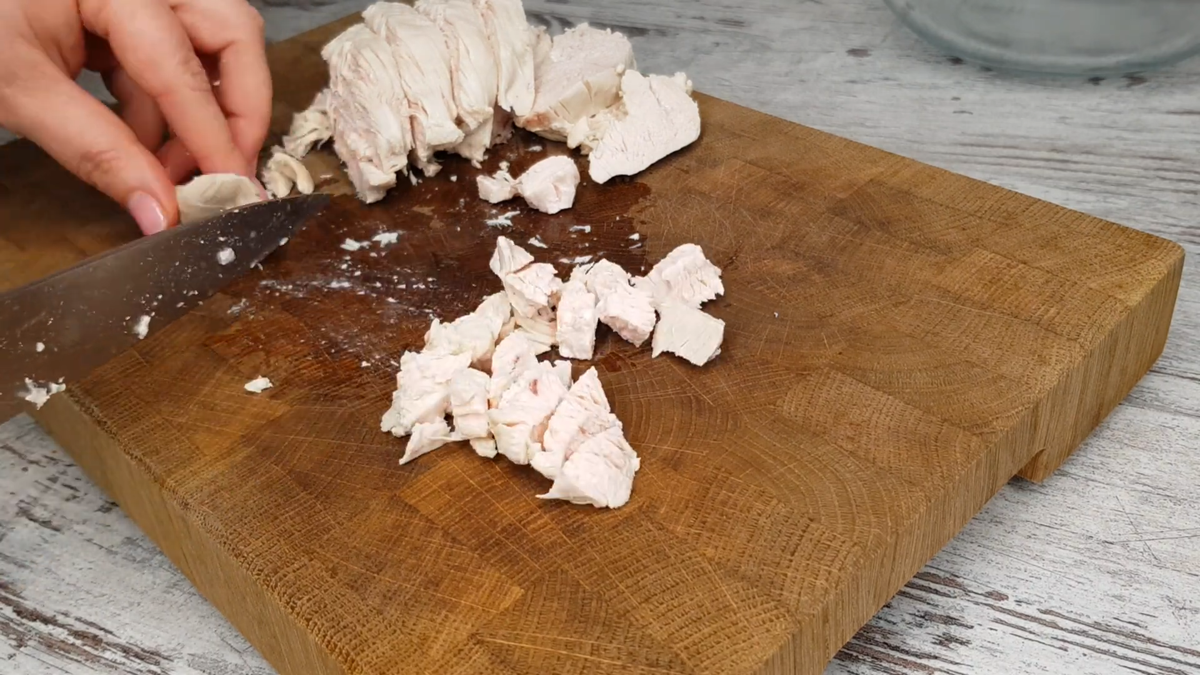 Всем привет сегодня приготовим праздничный салат из куриного филе. Берём 1 куриное филе (грамм 200) и отвариваем в солёной воде. Мелко нарезаем и отправляем в ёмкость. Берём 1 сладкий перец и лук порей(50-70 грамм) и мелко нарезаем 100 грамм твёрдого сыра натираем на крупной тёрке. Берём пучок петрушки и укропа и мелко нарезаем и всё отправляем в глубокую ёмкость. Далее добавляем 150-200 грамм консервированной кукурузы. Перед подачей на стол добавляем 50 грамм солёных сухариков и заправляем майонезом. Наш салат готов! Всем приятного аппетита и хорошего настроения и до новых встреч! Ингредиенты: 1 отварное куриное филе 1 сладкий перец 50 - 70 грамм лук порей 100 грамм твердый сыр 150 - 200 грамм консервированной кукурузы 50 - 70 грамм сухариков соленых Укроп, петрушка Майонез Подписывайтесь на канал, пишите комментарии, делитесь с друзьями и не забывайте ставить лайки 👍 😚