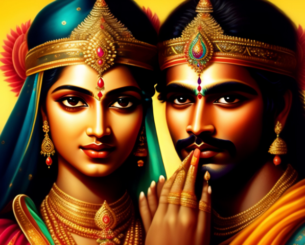 Радха и Кришна - это одна из самых великих любовных историй всех времен. Давным-давно в Индии, в небольшой деревушке жила красивая девушка по имени Радха. Она была известна своей красотой и многие юноши хотели завоевать ее сердце. Однажды на празднике она встретила молодого красавца Кришну. Он был смелым и храбрым, и его чарующий голос сразу же пленял ее сердце. Они начали встречаться и скоро полюбили друг друга. Но их любовь была запрещена, потому что Радха была обычной деревенской девушкой, а Кришна был богом. Он был желанным гостем на любом празднике, и его право было распоряжаться любовью и женскими сердцами. Но ничто не могло остановить эту настоящую любовь. Радха и Кришну единственное заботило, чтобы они были вместе. Они проводили много времени вместе, гуляли по полям и смотрели на звезды, пропевая песни о своей любви. Когда Кришна уезжал в свой дворец, Радха стояла на холме и смотрела за ним уходящим. Она скучала по нему, и все ее мысли были только о нем. Каждый день их любовь с