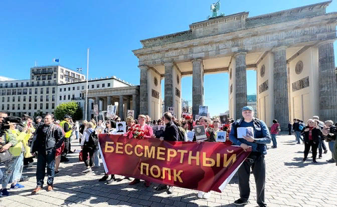 - — Я сам участвовал 9 мая в шествии «Бессмертного полка». Прошел с ним весь путь до мемориала советским солдатам в Трептов-парке. Не могу согласиться с вашей знакомой, которая говорит, что «все разрешили». Сам видел, как полиция отнимает у людей и знамена, и ленточки. Даже портреты их родственников, участвовавших во взятии Берлина в 1945-м! Им объясняют: родственник давно умер, подпись на портрете — о нем самом. В ответ: мы вашего языка не знаем, убирайте портрет.