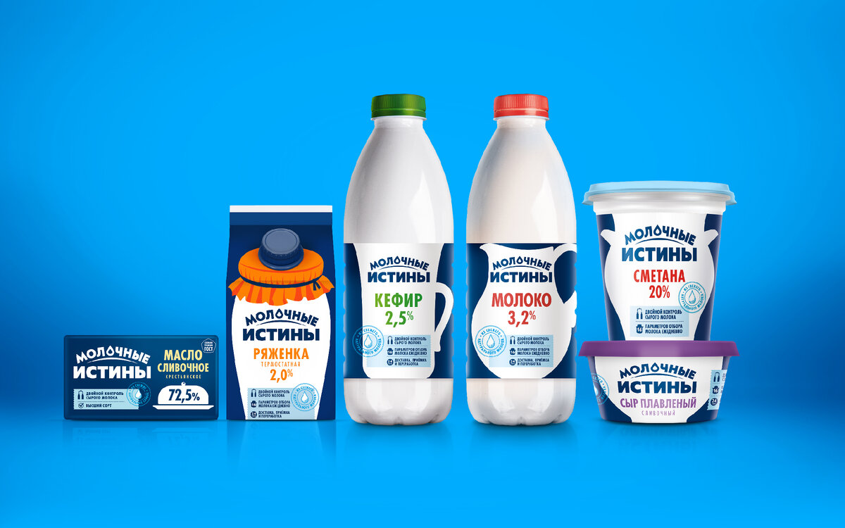 ООО «Любимый город» производит молочную продукцию под торговыми марками «Любимый город», «Мое любимое лето», «Active Energy» по международным стандартам качества. Имея в своем портфеле несколько успешных локальных брендов, компания решила запустить новый бренд для аудитории федеральных, которая ценит качество и выбирает лучшее для себя и своей семьи. Задача Разработать узнаваемый дизайн упаковки для нового бренда традиционной молочной продукции, который будет: Нам важно было донести до покупателя позиционирование нового бренда — бескомпромиссно ответственное отношение к созданию продуктов и сохранению свежести на благо семей, и его преимущества: собственная сырьевая база, инновационное оборудование, своя лаборатория, отборное молоко от лучших поставщиков. Стабильность качества, забота о потребителе — именно это мы должны были отразить в дизайне упаковки и показать прозрачность производства. 💡 Решение Мы начали с разработки нейминга, придумав для бренда название «Молочные истин