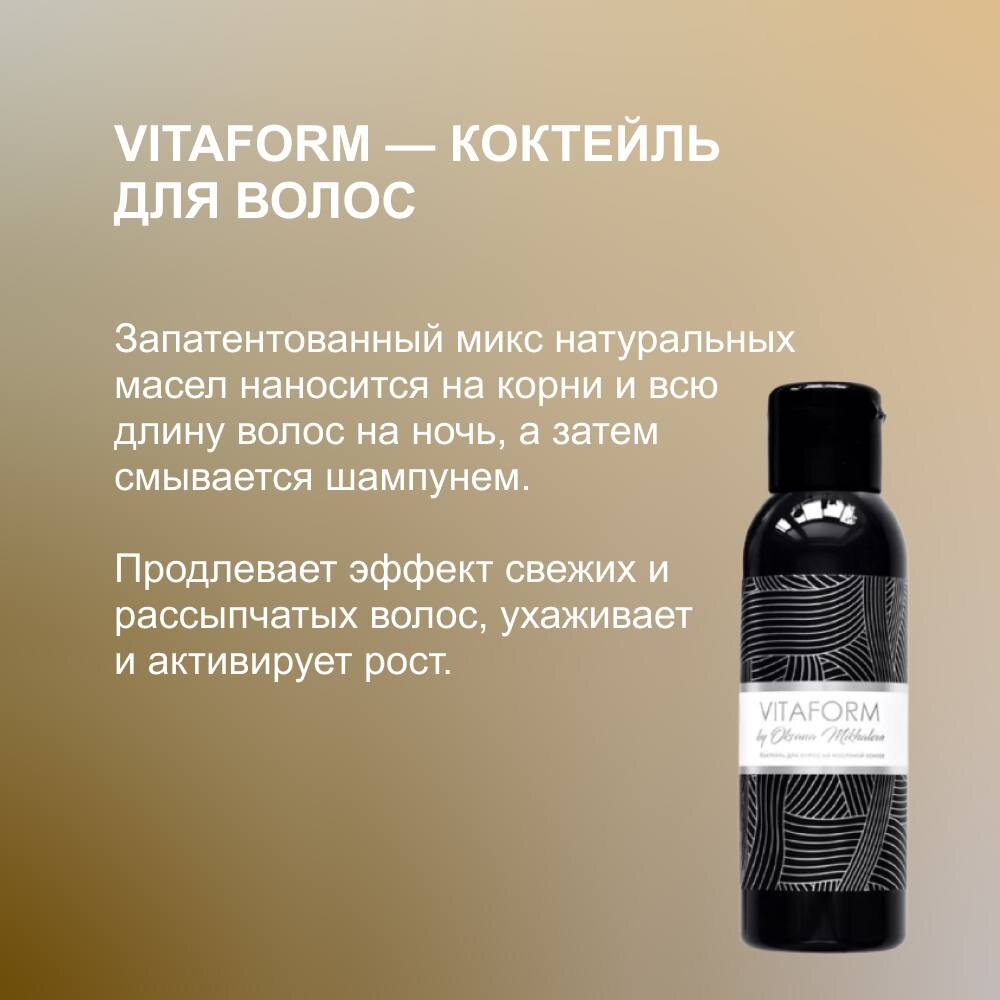 Почему Vitaform by Oksana Mikhaleva работает с первого раза? Чем он покоряет сердца? Все просто ✨В составе соседствуют натуральные масла премиального качества в секретной комбинации: 💛Масло репейное 💛Масло витамина А 💛Масло розмарина 💛Масло витамина Е 💛Масло касторовое 💛Масло витамина B6 💛Масло крапивы Формула не имеет аналогов и запатентована. А значит ее эффективность и уникальность доказана 😌🙏Самое важное, что мы прошли проверку не только официальных органов, но и вашу! Vitaform by OM заслужил доверие и помог тысячам красавиц улучшить качество волос 💘 ПОМНИТЕ! Простота и натуральность состава не означает, что его возможно повторить в домашних условиях из аптечных ингредиентов.