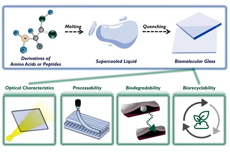 Новая технология позволяет получать прозрачный и прочный материал из пептидов и аминокислот. Такое стекло демонстрирует отличные оптические свойства и безопасно разлагается не только в природе, но и непосредственно в организме животных.